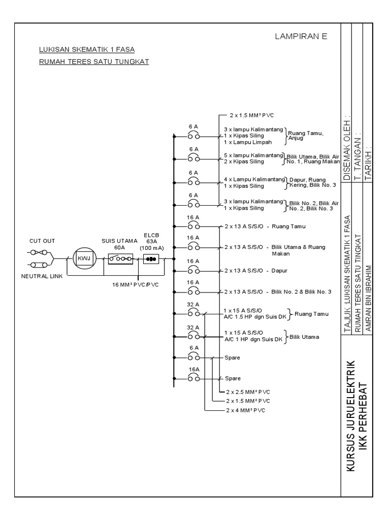 Elektrik duniaku nota pendawaian elektrik satu fasa. Lukisan Skematik Perpaipan. Jenis pendawaian yang hendak digunakan iv.